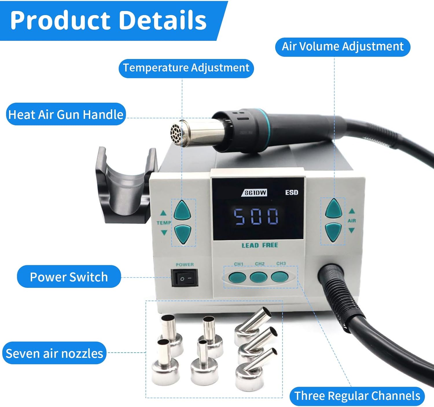 You want the best value at $159.99. This is an incredible price for a 1000W professional station with 7 nozzles, temperature adjustment, and air volume control. Perfect for phone and PCB repair.